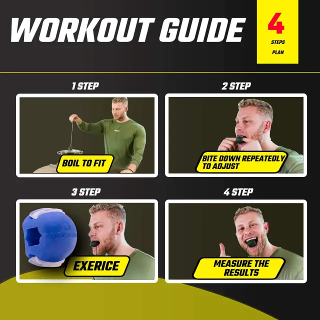 Razgibajte obraz: z vadbo Jaw trenirate obrazne mišice, da zmanjšate povešenost in gube. Dobite bolj napete, bolj definirane linije, ki vam dajejo bolj zdrav in mladosten videz. Žogica za žvečenje nudi upor in na ta način deluje na mišice obraza, čeljusti in vratu.