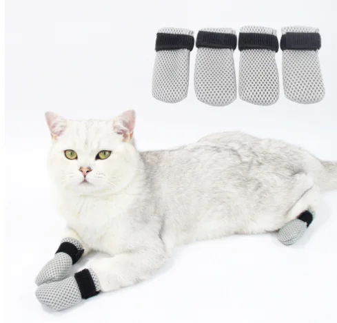 Paket 4 mehkih nogavic proti praskam za hišne ljubljenčke Gray M