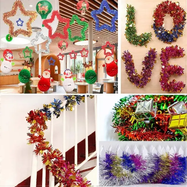 Paket 5 sijočih girland, okraski za božično drevo, 2 m dolgi božični poroki, rojstnodnevni zabavi - večbarvni