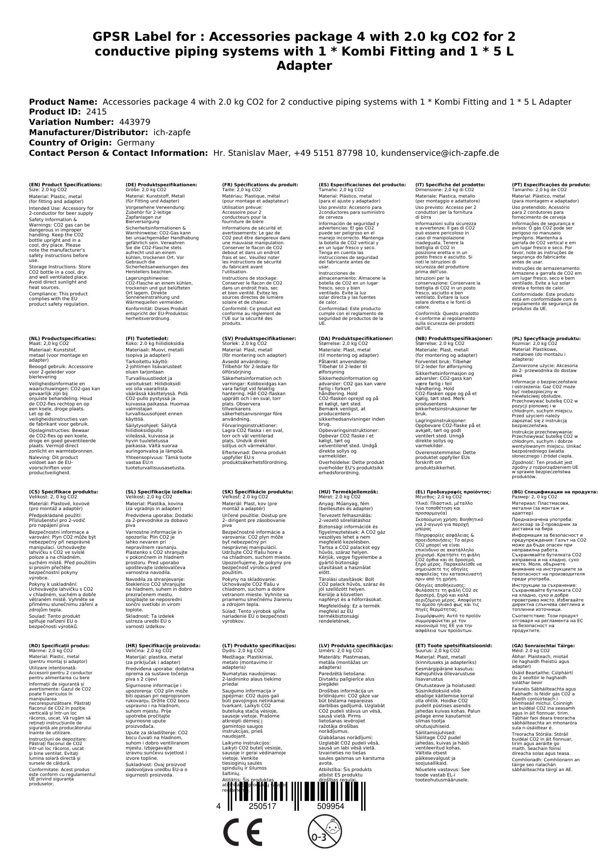 Paket dodatkov 4 s 2,0 kg CO2 je zasnovan za 2-cevne sisteme za točenje piva. Ta komplet vključuje vse esencialne komponente za optimalno delovanje vašega sistema.