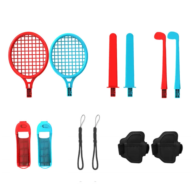 Komplet dodatne opreme je popoln paket dodatne opreme za športne igre Nintendo Switch. Vsebuje med drugim teniški lopar, meč in palico za golf v dvojnem kompletu. Lahek in ergonomski dizajn, ki ustreza tako odraslim kot otrokom. Vzdržljiva in kakovostna. Vključno s trakovi in nosilcem za krmilnik.