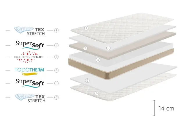Vsaka plast je bila izdelana in zasnovana tako, da je dosežena pravilna porazdelitev pritiska, tako da med počitkom ne povzroča točk pritiska in zmanjšuje nočne gibe.