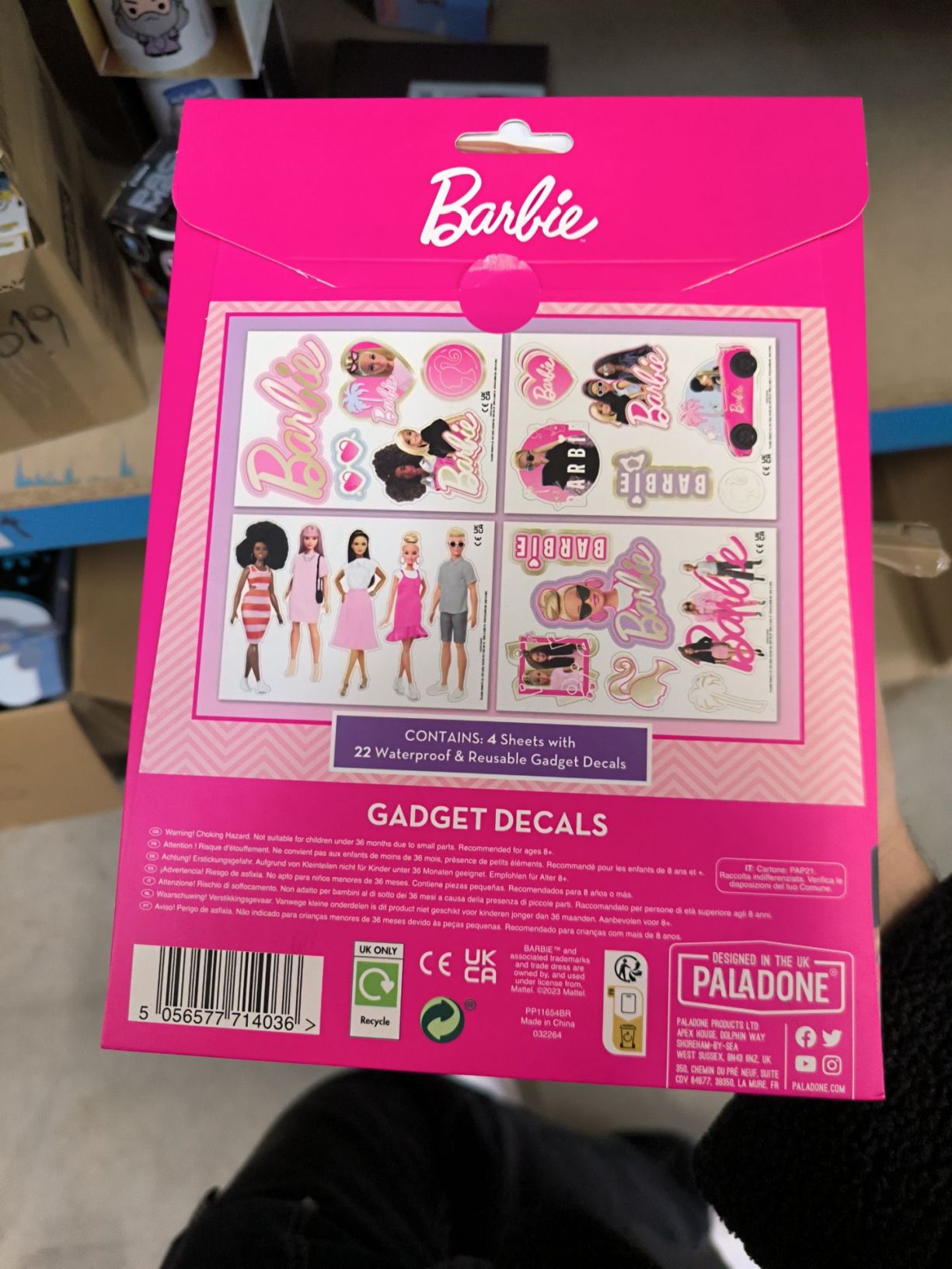 S temi sanjskimi nalepkami Barbie Gadget Decals lahko okrasite svoj telefon, prenosni računalnik in druge naprave.22 nalepk je vodoodpornih in primernih za večkratno uporabo, zato jih lahko vedno znova uporabite. Na nalepkah so upodobljene različne lutke Barbie, vibracije Malibuja in še več iz pravljičnega sveta Barbie.Z nalepkami Barbie Gadget Decals boste vso svoje naprave in pripomočke takoj modno nadgradili! Oboževalci jih bodo vzljubili.Značilnosti:Svojo tehniko lahko modno nadgraditeVključuje 22 nalepk za pripomočkeVsebujejo lutke Barbie in vibracije Malibu.Uradno licenciran izdelek Barbie
