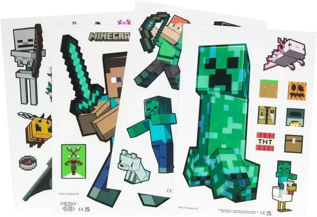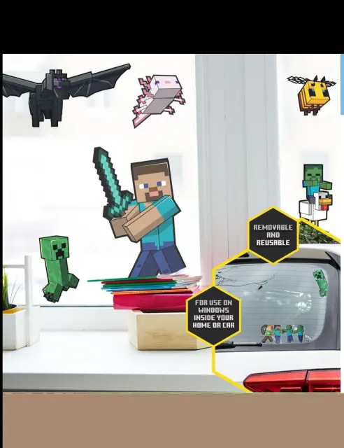 USTVARITE SVOJ LASTNI PRIZOR: Oživite vesolje Minecrafta tako, da ustvarite lastne slikovne prizore s temi zabavnimi in preprostimi nalepkami za okna. ODSTRANLJIV IN PONOVNO UPORABLJIV: Ta komplet vključuje 34 odstranljivih in ponovno uporabnih samolepinih nalepk, ki omogočajo neskončno prilagajanje vaših oken brez ostankov lepila. POPOLNA PRODAJA ZA IGRE: Idealne za fante in dekleta, ki obožujejo Minecraft, so te nalepke za okna odlično darilo in dodajo zabaven pridih vsaki spalnici ali igralnemu prostoru. URADNI IZDELEK MINECRAFT: Ker so uradno licenčni izdelek Minecrafta, te nalepke za lepljenje oken zagotavljajo visoko kakovost in pristnost za vse ljubitelje Minecrafta.