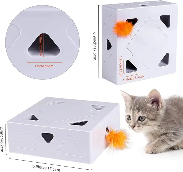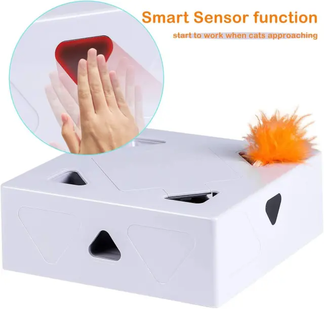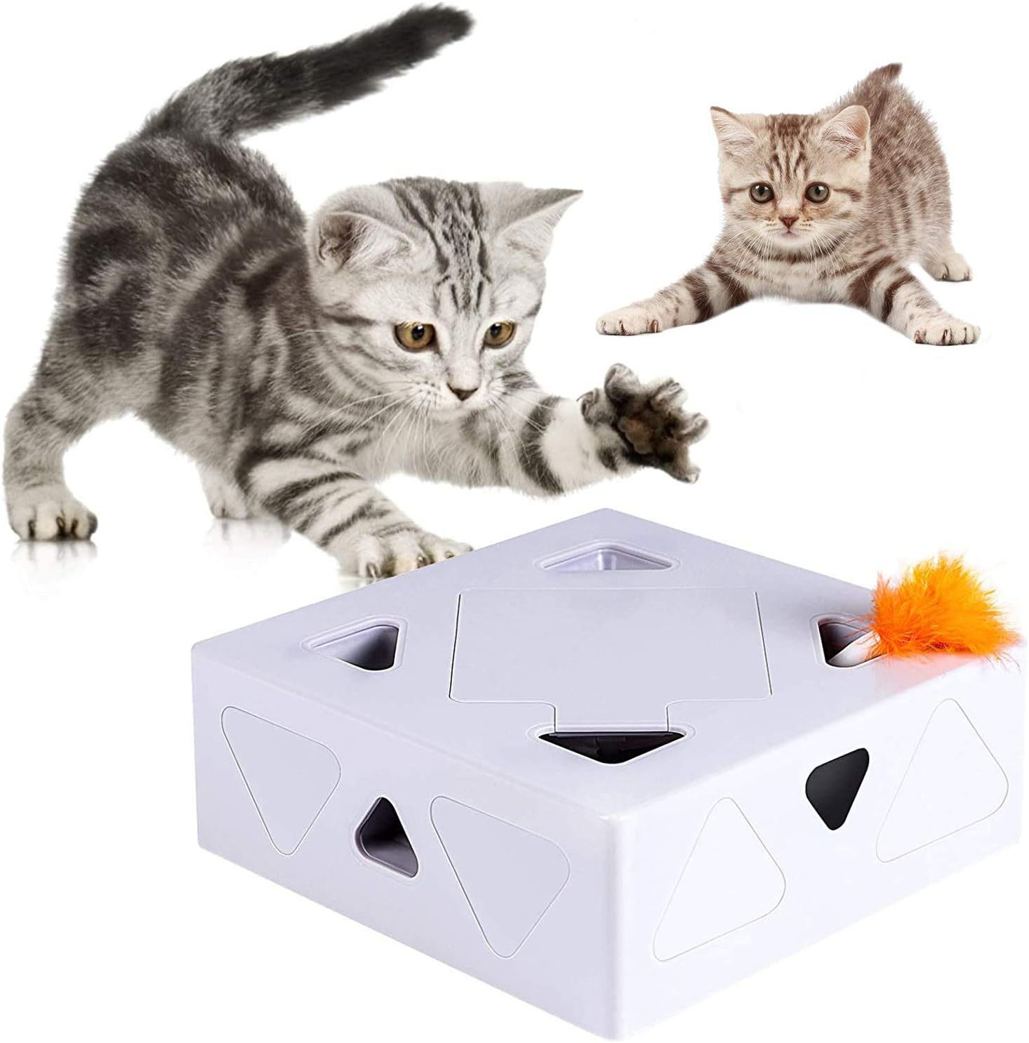 Pametna interaktivna mačja igrača, interaktivna elektronska mačja igrača Ambush z vrtljivim perjem, samodejnim izklopom, čarobna škatla s smešnim mačj