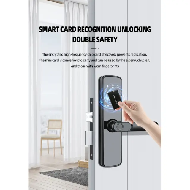 Pametna Ključavnica za Vrata: APP, Geslo, Kartica & Ključ - Tuya Združljiva