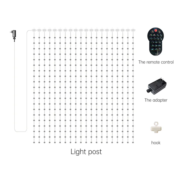 Pametna LED lučka za zavese, RGB pisane točkovno nadzorovane usnjene žične luči-USB 160x160x1 cm