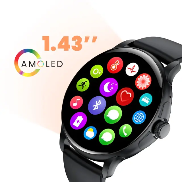 Športna povezana ura AMOLED s svetlečim 1,43-palčnim zaslonom, klici prek povezave Bluetooth in popolnim sledenjem zdravju po standardu IP67. Napredno sledenje zdravju s srčnim utripom, SpO2, krvnim tlakom in analizo spanja. Minimalistična, lahka zasnova zagotavlja udobje pri daljšem nošenju. Različni športni načini z natančnim spremljanjem zmogljivosti in podrobno statistiko.