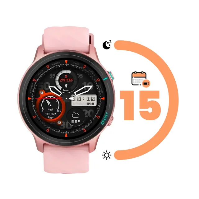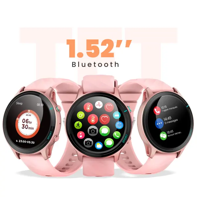 Titmo O-100 Connected Watch z 1,52″ TFT zaslonom, popolnim sledenjem zdravju in klici prek povezave Bluetooth. Napredno spremljanje zdravja: srčni utrip, nasičenost (SpO₂), krvni tlak in spanje. Vodotesnost IP68 za odpornost na dež, prah in rahlo potopitev. Izjemna življenjska doba baterije od 10 do 15 dni zaradi baterije s kapaciteto 390 mAh.