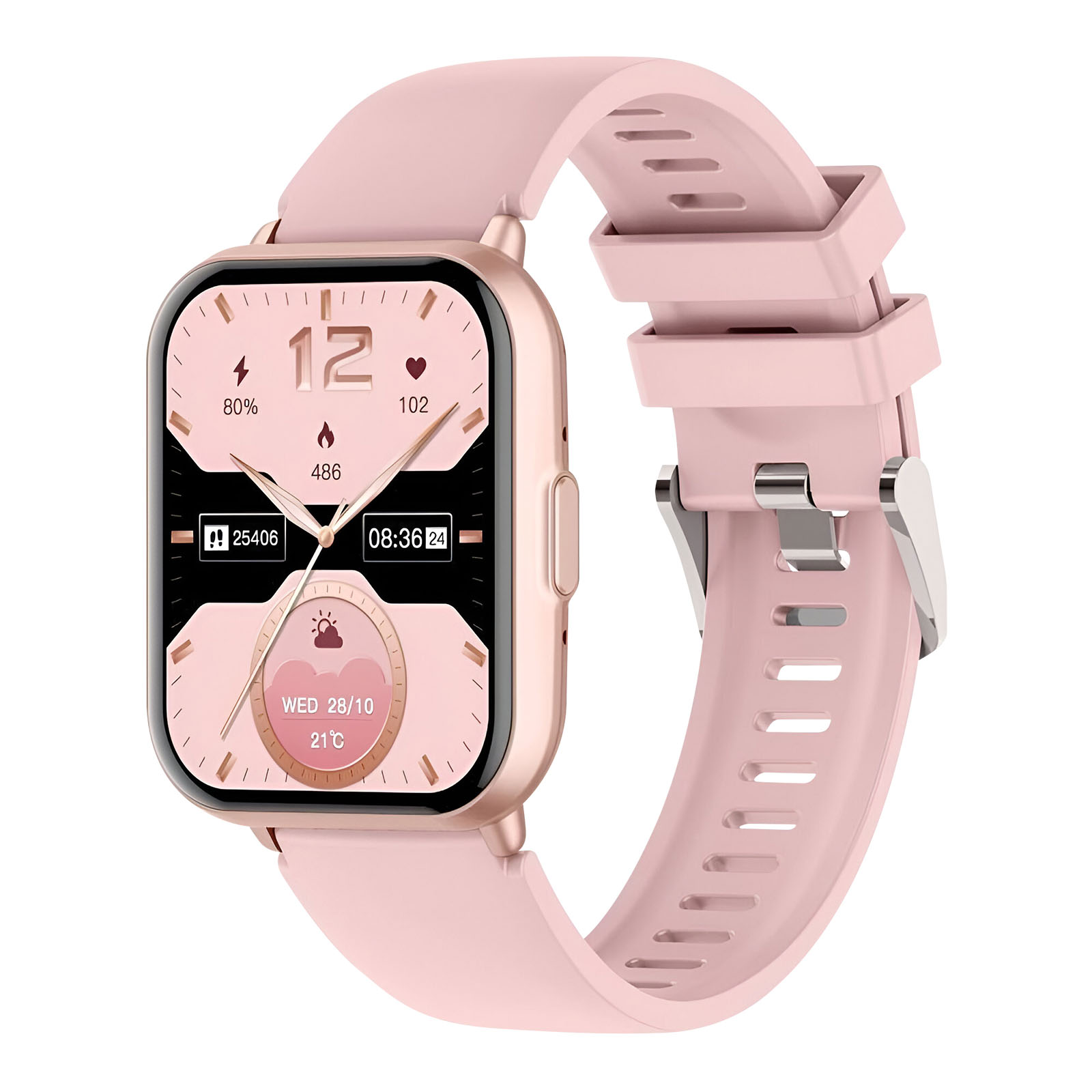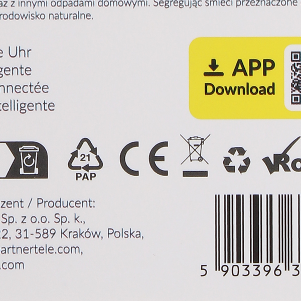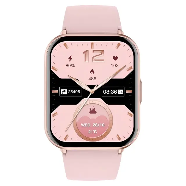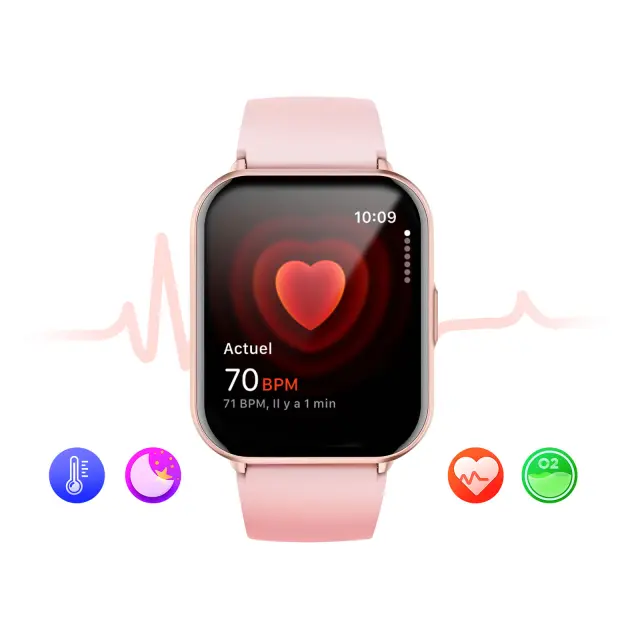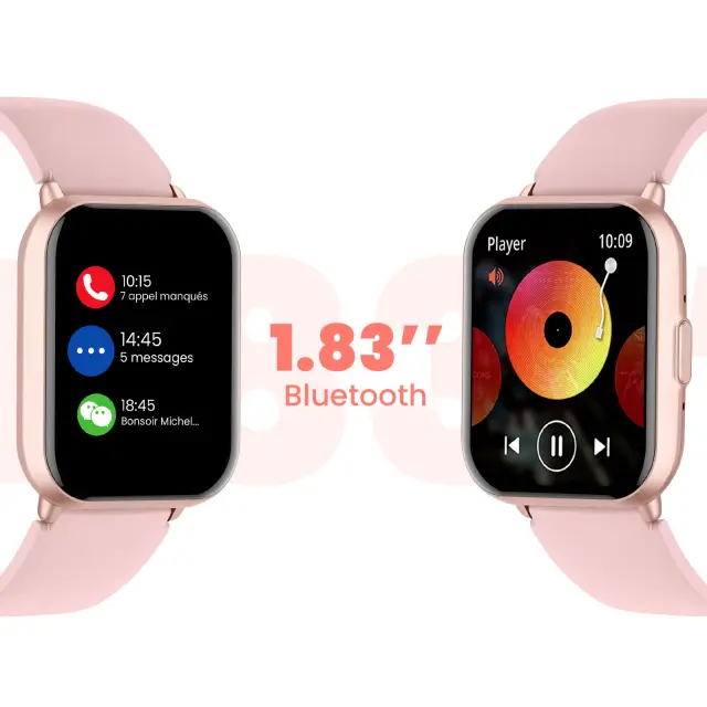 Titmo E-100 Connected Watch z velikim 1,83″ zaslonom TFT in klici prek povezave Bluetooth. Popolno spremljanje zdravja: srčni utrip, SpO₂ in spanje. Odpornost na vodo in prah IP68. 5 do 7 dni avtonomije z 280 mAh baterijo in magnetnim polnjenjem.