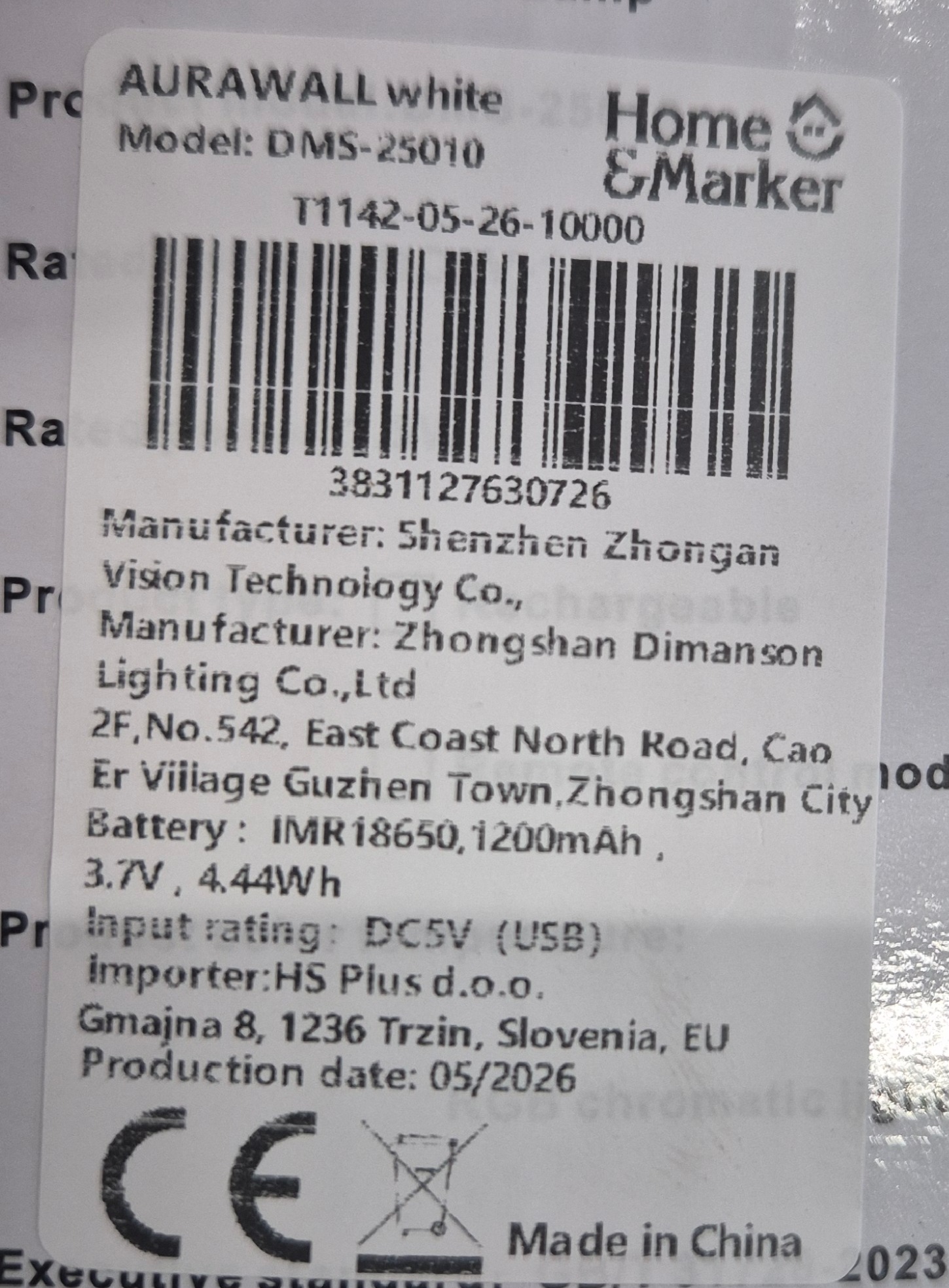 Vgrajena baterija s kapaciteto 1500 mAh zagotavlja zanesljivo osvetlitev več tednov in celo mesecev z enim polnjenjem.
