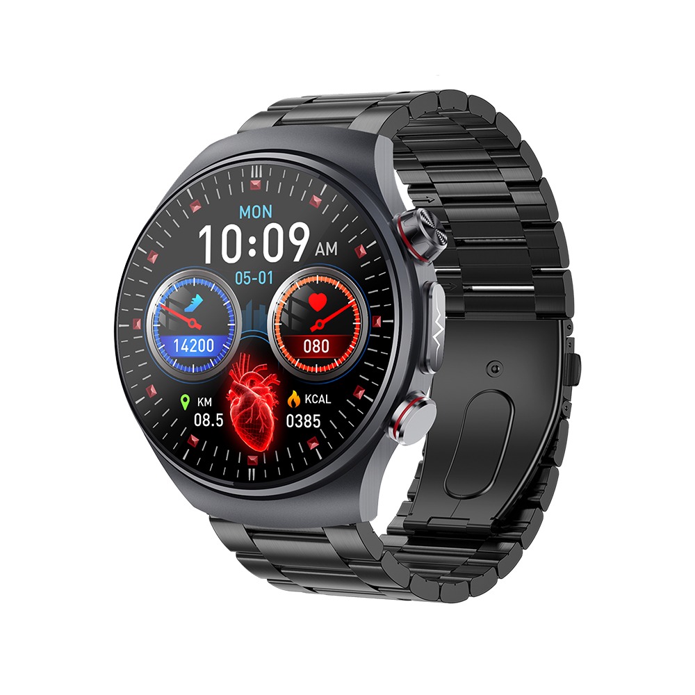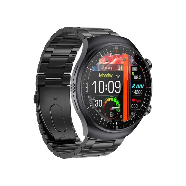 Pametna ura s črnim jeklenim paščkom, EKG, AMOLED in Bluetooth klicanjem