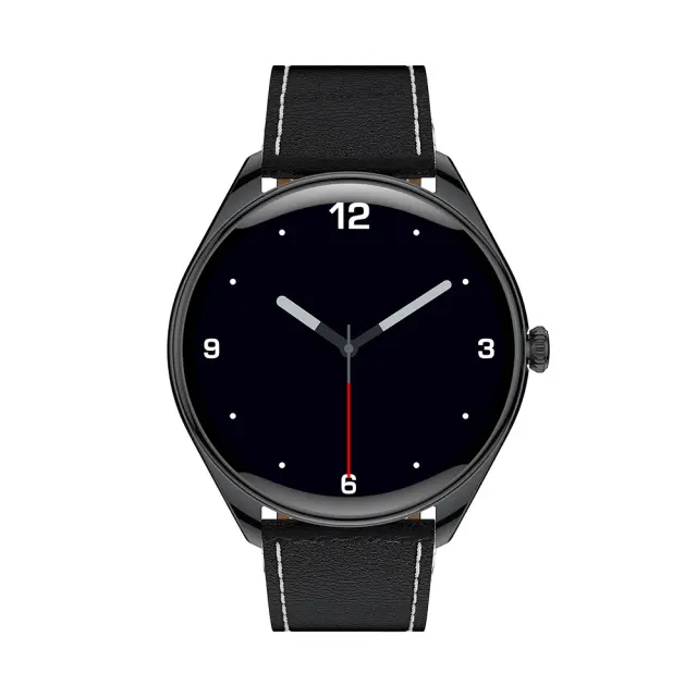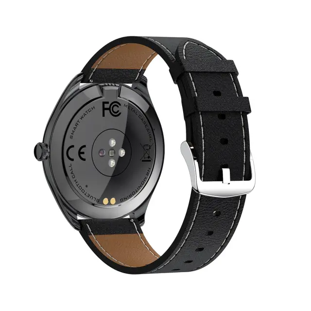Pametna ura s črno številčnico in črnim PU usnjenim pasom - Bluetooth klic