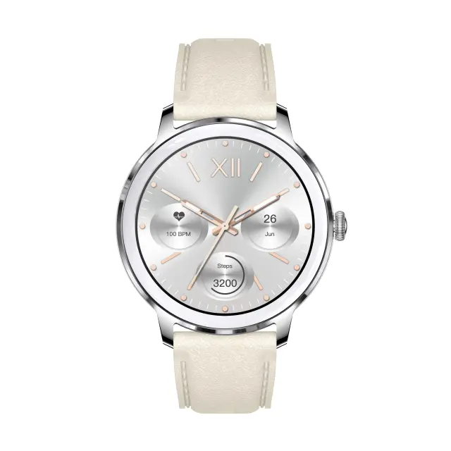 Eleganten in funkcionalen dizajn: Ta pametna ura se ponaša z elegantnim in modernim dizajnom z udobnim silikonskim paščkom. 1,32-palčni AMOLED zaslon zagotavlja jasno in živahno izkušnjo gledanja. Prilagodite si videz ure z različnimi možnostmi, ki ustrezajo vašemu slogu.