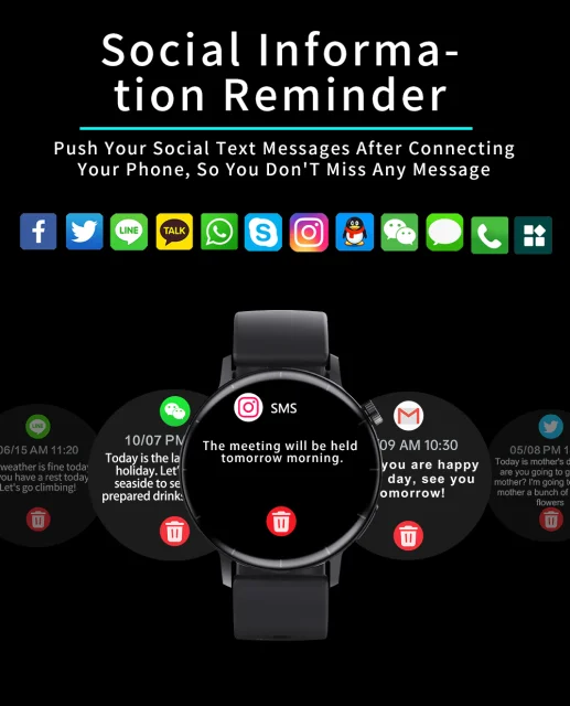 Pametna ura s srčnim utripom, merilnikom spanja, pedometrom Black