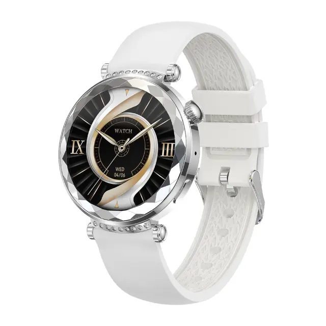 Pametna ura s srebrno številčnico in sivim silikonskim paščkom - Bluetooth klic