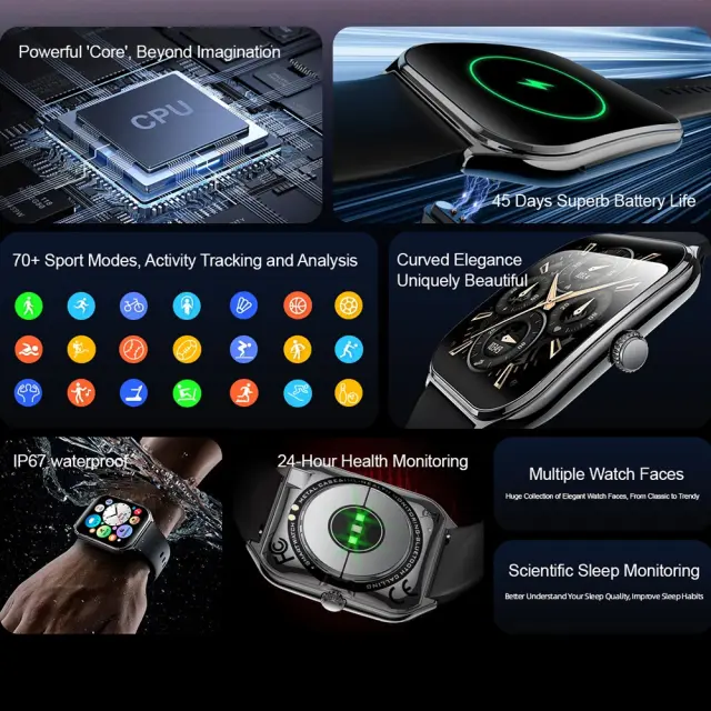 Pametna ura Space Gray s črnim silikonskim paščkom - sledenje zdravju in telesni pripravljenosti
