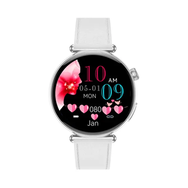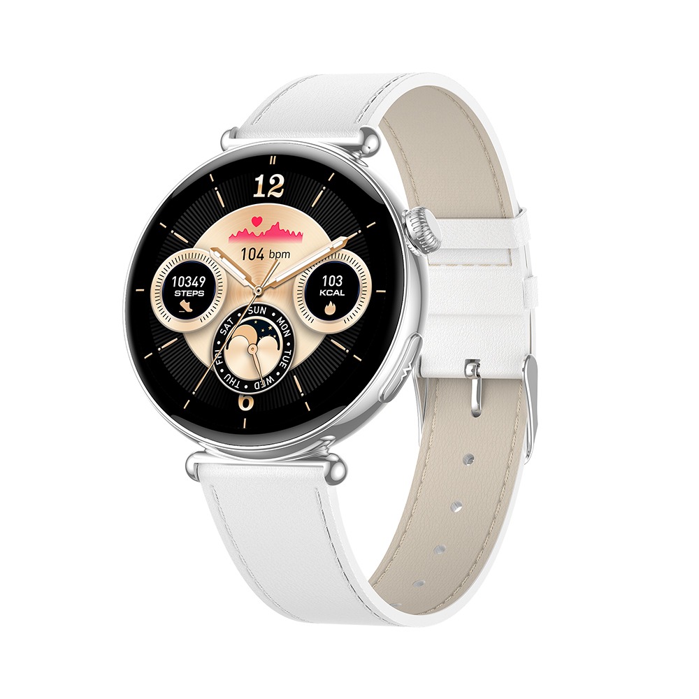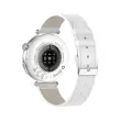Pametna ura - srebrna številčnica z belim usnjenim pasom: AI, EKG in spremljanje zdravja