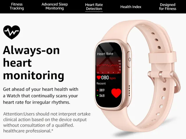 Celovito spremljanje zdravja: s to pametno uro ves dan spremljajte svoj srčni utrip in krvni tlak. Bodite obveščeni o svojem zdravju in se premišljeno odločajte o svojem počutju.