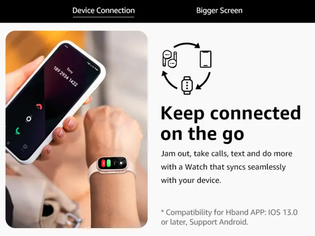 Brezhibna povezava: Povežite pametno uro s telefonom prek povezave Bluetooth za prejemanje obvestil, klicanje in upravljanje glasbe. Ostanite povezani preprosto in učinkovito, tudi ko ste na poti.