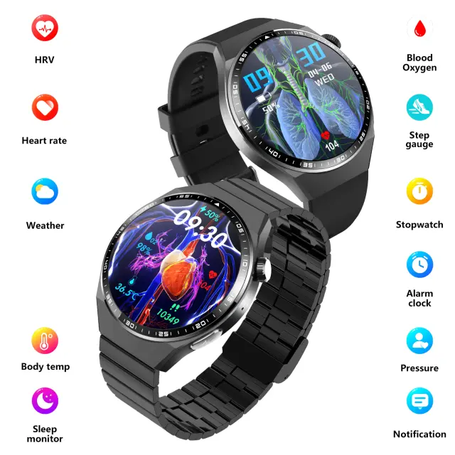 EKG in analiza zdravja: Ta pametna ura ima zmogljivo funkcijo EKG za spremljanje srčnega utripa in zagotavlja celovito analizo zdravja, vključno s telesno sestavo, krvnimi komponentami (sečna kislina, krvni lipidi) in ravnijo kisika v krvi.