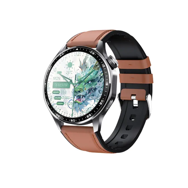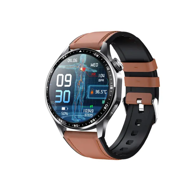 Pametna ura z EKG, merilnikom srčnega utripa, krvnega tlaka in pedometrom Black and Brown Leather strap