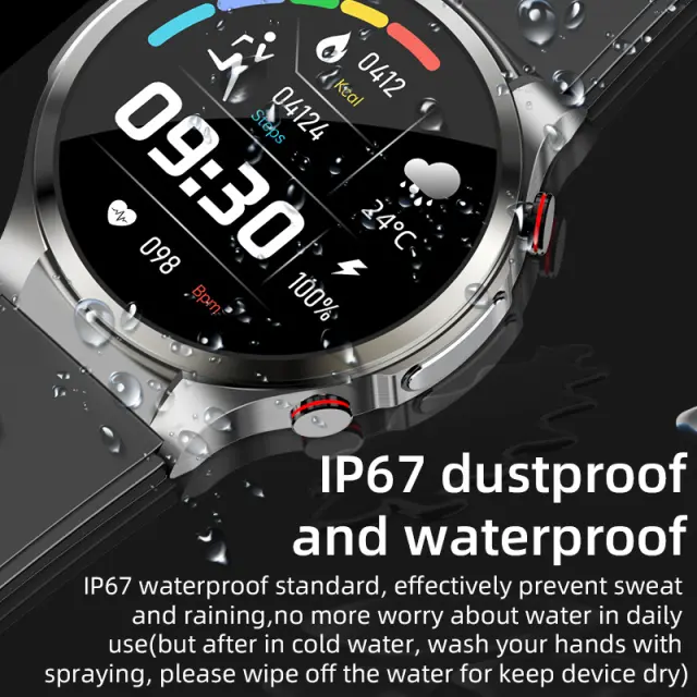 Dolga življenjska doba baterije in vodoodpornost: športna ura se napolni v samo 2 urah in je lahko v stanju pripravljenosti do 15 dni. Je vodoodporen po standardu IP67 in odporen na brizganje vode zaradi dežja in umivanje rok. Opomba: Ne uporabljajte ga v vodi, kot je tuš, savna, plavanje itd.