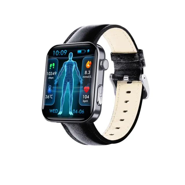 Pametna ura z merilnikom srčnega utripa, krvnega tlaka, kisika v krvi, pedometer Black Leather strap