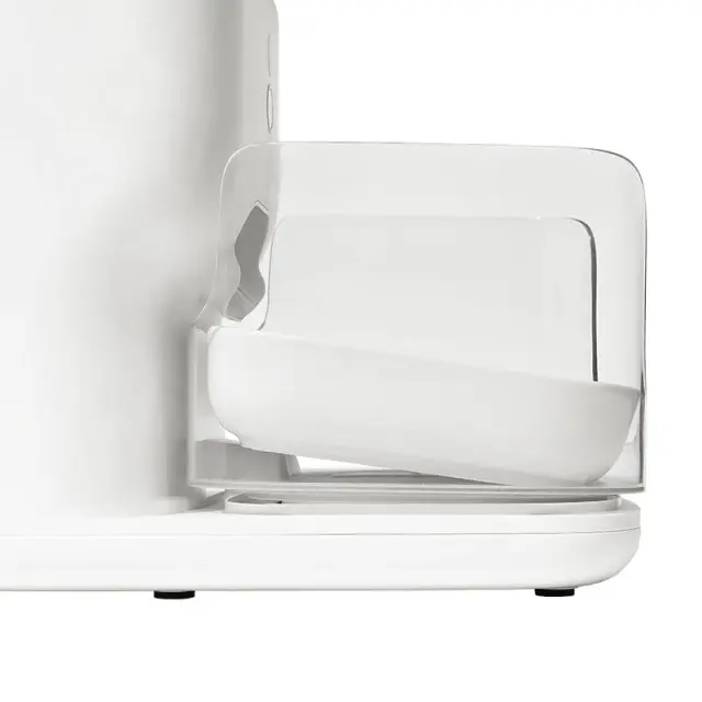 Odločite se za dozirnik, ki ohranja svežino hrane. Silikonska tesnila, s katerimi je opremljen Fresh 2, zagotavljajo izolacijo pred zrakom in vlago ter preprečujejo nastanek plesni. Avtomatsko zapiranje odprtine za odvzem ščiti pred insekti, vgrajena posoda z eksikantom pa je odgovorna za svežino vsakega obroka. Prav tako vam ni treba skrbeti za nevarnost zamašitve in zamašitve živil, katerih velikost ne presega 16 mm. Poleg tega je posoda izdelana iz materialov, varnih za hišne ljubljenčke, nagib pod kotom 7° pa omogoča, da vaš ljubljenček lažje je. Demontaža in čiščenje naprave potekata učinkovito in brez napora, kabel pa je odporen proti ugrizom.