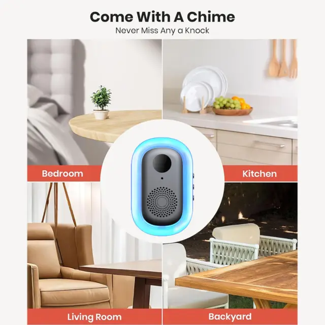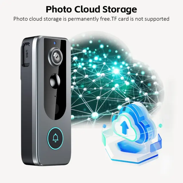 Oddaljena varnost doma: Izboljšajte varnost svojega doma s tem pametnim video zvoncem. Z oddaljenim nadzorom APP si lahko ogledate posnetke v živo od koder koli in kadar koli. Povezljivost WIFI zagotavlja stabilno in zanesljivo povezavo. To vam omogoča spremljanje vašega praga, prejemanje opozoril in celo komunikacijo z obiskovalci na daljavo, kar zagotavlja brezskrbnost, ne glede na to, ali ste v službi, na potovanju ali se preprosto sproščate doma. Priložena kartica 32GTF omogoča lokalno shranjevanje videoposnetkov, kar zagotavlja, da nikoli ne zamudite trenutka. Združljiv z različnimi pametnimi domačimi sistemi za brezhibno integracijo.