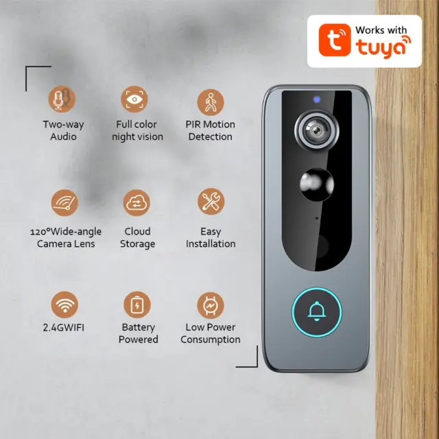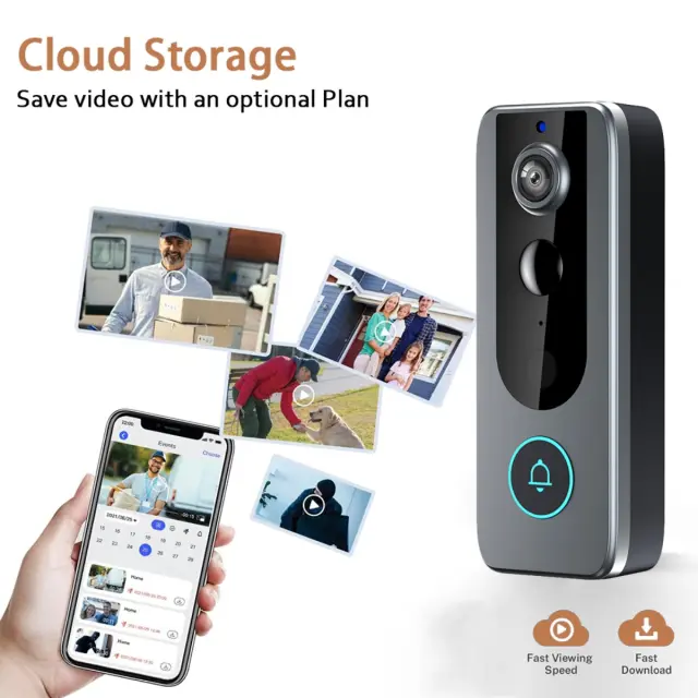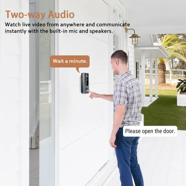 Napredno nočno gledanje: Izkusite kristalno jasno vidljivost tudi v slabih svetlobnih pogojih s funkcijo barvnega nočnega vida. Ta napredna tehnologija zagotavlja, da lahko jasno vidite, kdo je pri vaših vratih, ne glede na čas dneva. Čip COMS izboljša kakovost slike in zagotavlja ostre in podrobne video posnetke. Ta funkcija je ključnega pomena za prepoznavanje obiskovalcev in odvračanje morebitnih vsiljivcev, zaradi česar je vaš dom varnejši in bolj varen. Kombinacija barvnega nočnega vida in kamere visoke ločljivosti zagotavlja optimalno delovanje v vseh svetlobnih pogojih. Združljiv s standardnimi omrežji WIFI za enostavno nastavitev.
