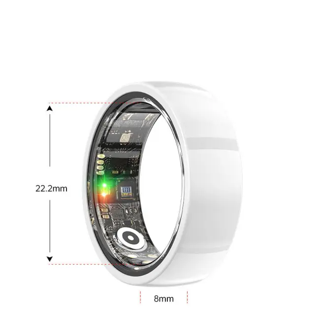 Elegantna oblika: Pametni prstan R1000 se ponaša z elegantno in prefinjeno keramično zasnovo, zaradi česar je popoln dodatek za vsako priložnost. Njegova minimalistična estetika dopolnjuje tako ležerno kot formalno obleko, kar vam omogoča, da spremljate svoje zdravstvene in telesne cilje, ne da bi pri tem žrtvovali slog.