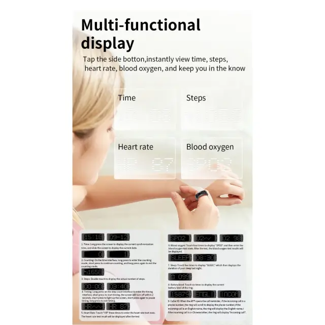 Pametni prstan z zaslonom in etuijem za polnjenje - sledite telesni pripravljenosti in zdravju Gold 10