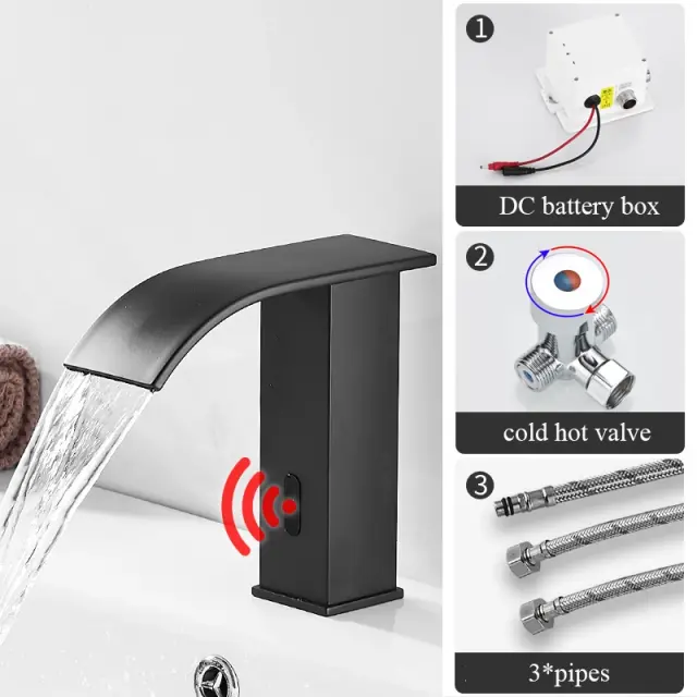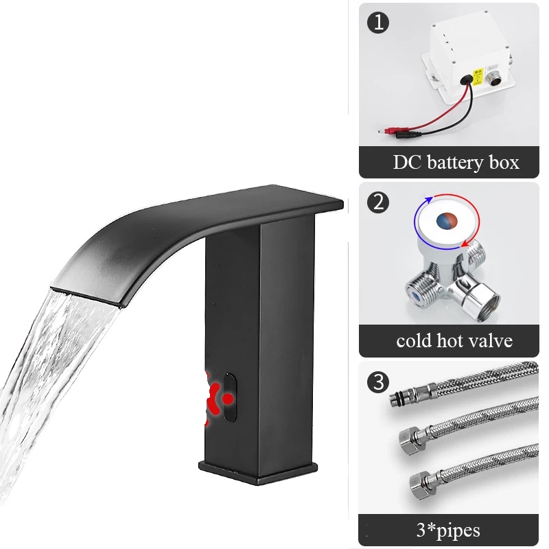 Pametni senzorni pipa za umivalnik, samodejno zaznavanje, vodopadno odmerjanje, črna kratka A