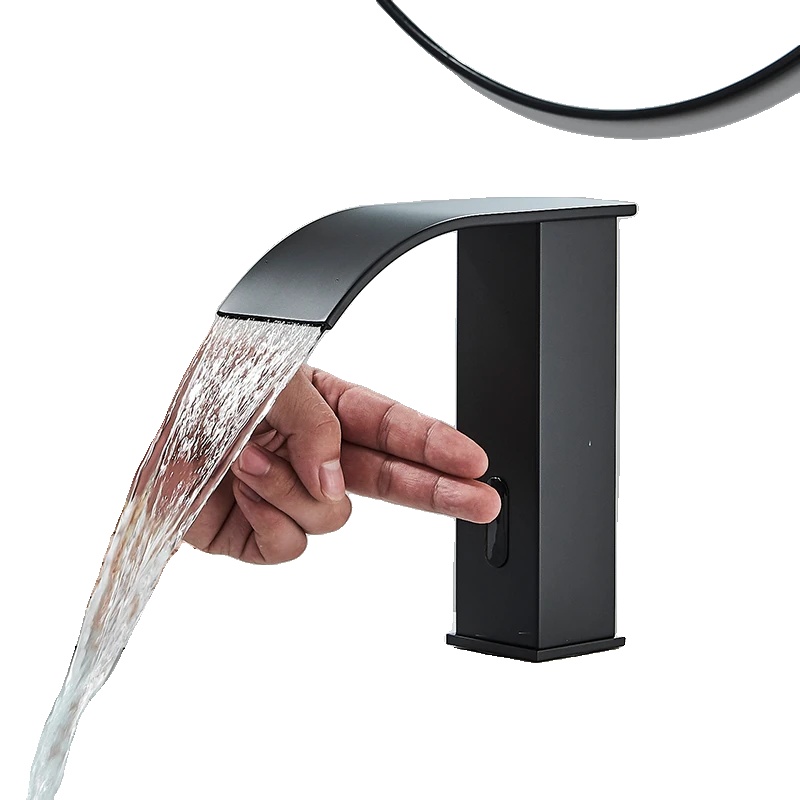 Pametni senzorni umivalni pipa, trdna medenina, brezdotakno delovanje, črna kratka A