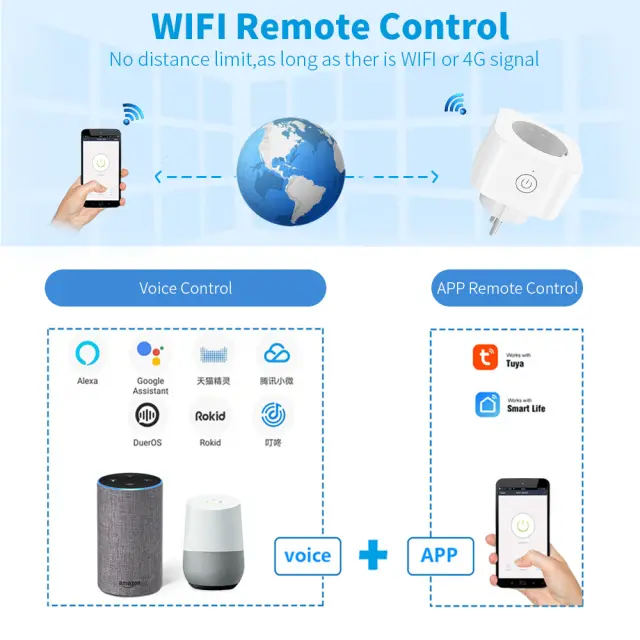 Vaši gospodinjski aparati kadarkoli in kjer koli, te naprave pa lahko vklopite/izklopite prek svojih pametnih telefonov, ki jih upravlja sistemska aplikacija iOS ali Android. Omogoča tudi glasovno upravljanje z Alexa/Google Assistance.