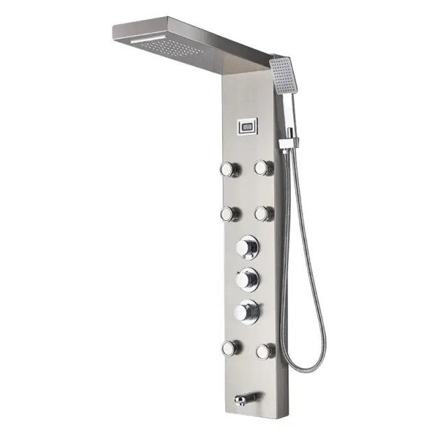 Panal za prho, funkcije dežja in slapov, digitalni prikaz temperature, brušen nikelj