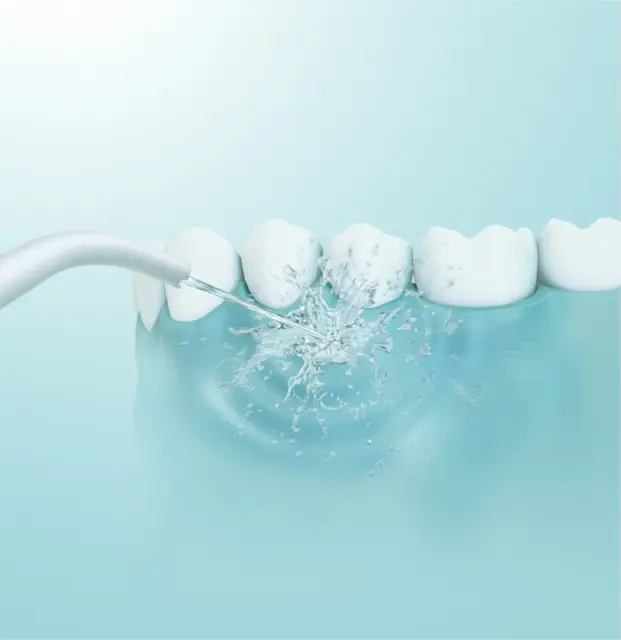Zmogljiv vodni curek: Močan in natančen vodni curek odstranjuje zobne obloge, ostanke hrane in bakterije izmed zob ter ob dlesni, kar pomaga preprečevati karies in bolezni dlesni.