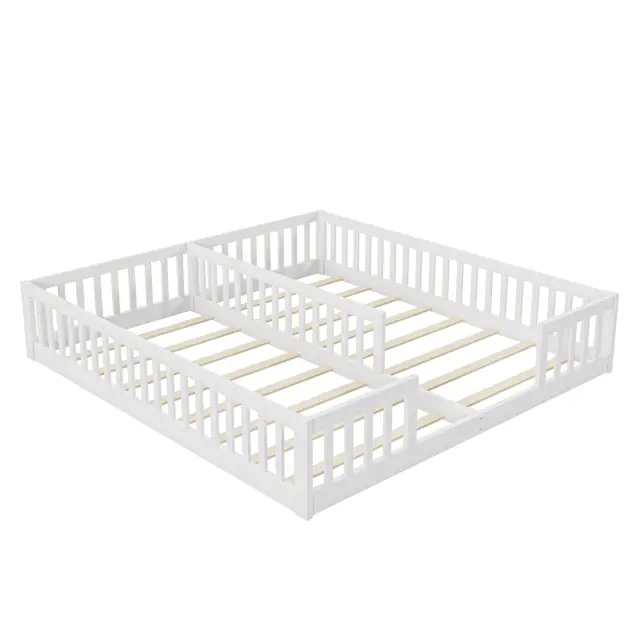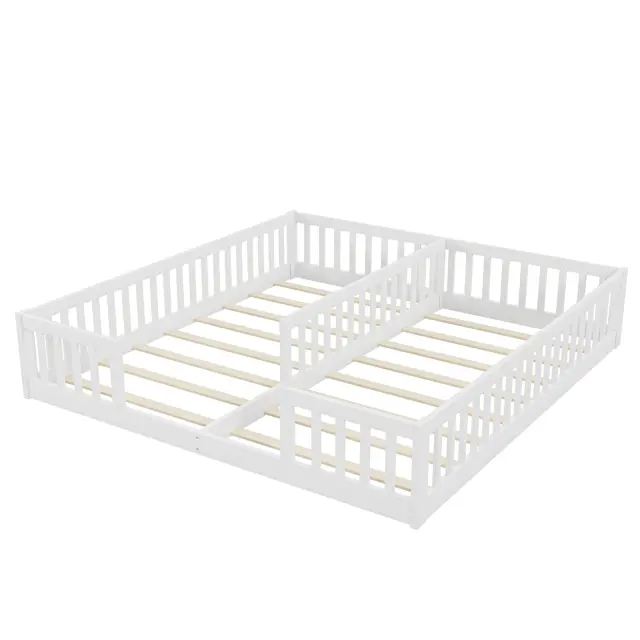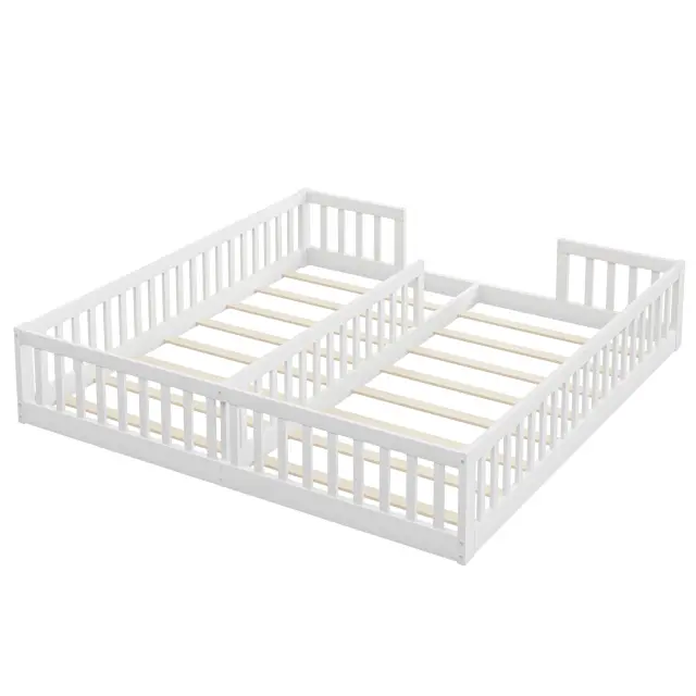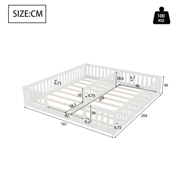 Panelna postelja 90x200 cm, otroška postelja z ograjo, borov les, bela, minimalistična