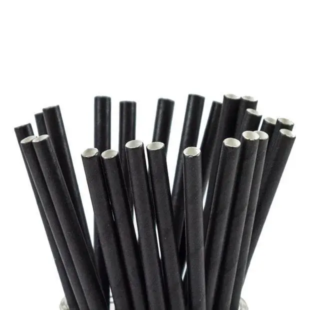 Papirnate slamice v črni barvi, medium dolžine (20cm) in širšega premera (8cm).