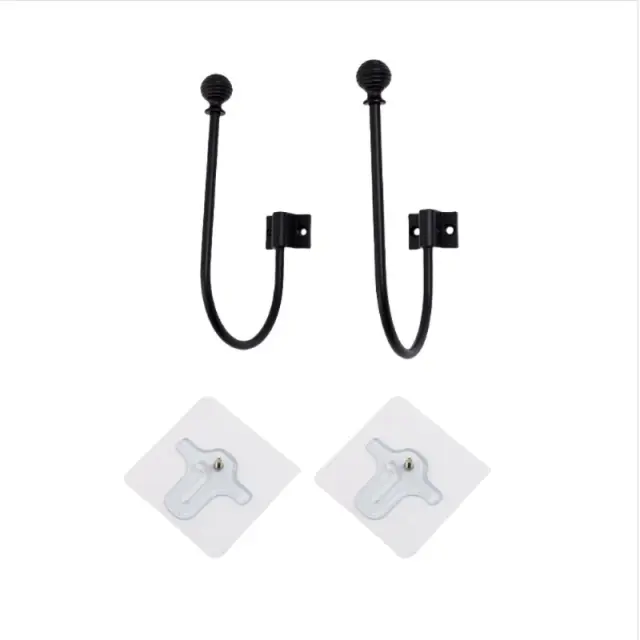 Par nedrsečih U-oblika kavljev za zavese - Nastavljivi držalniki za okna Black