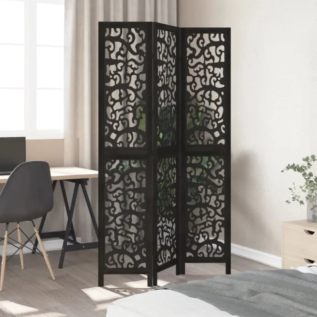 Paravan - Sobne pregrade 3-delni črn trden les pavlovnije
