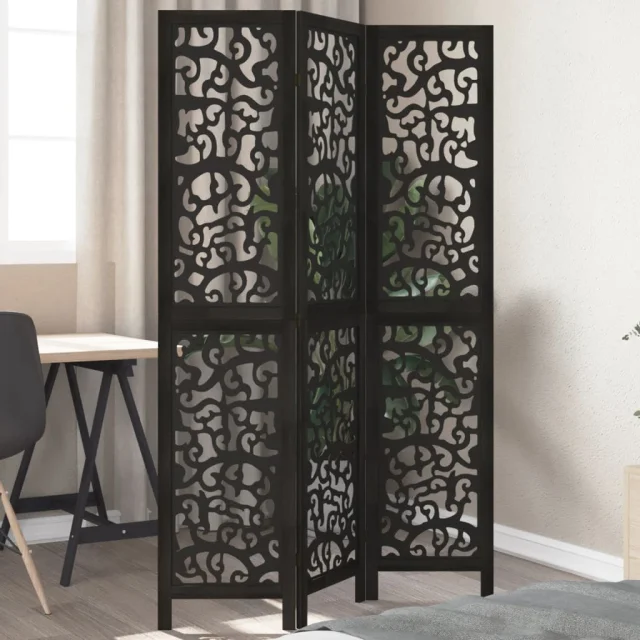 Paravan - Sobne pregrade 3-delni črn trden les pavlovnije