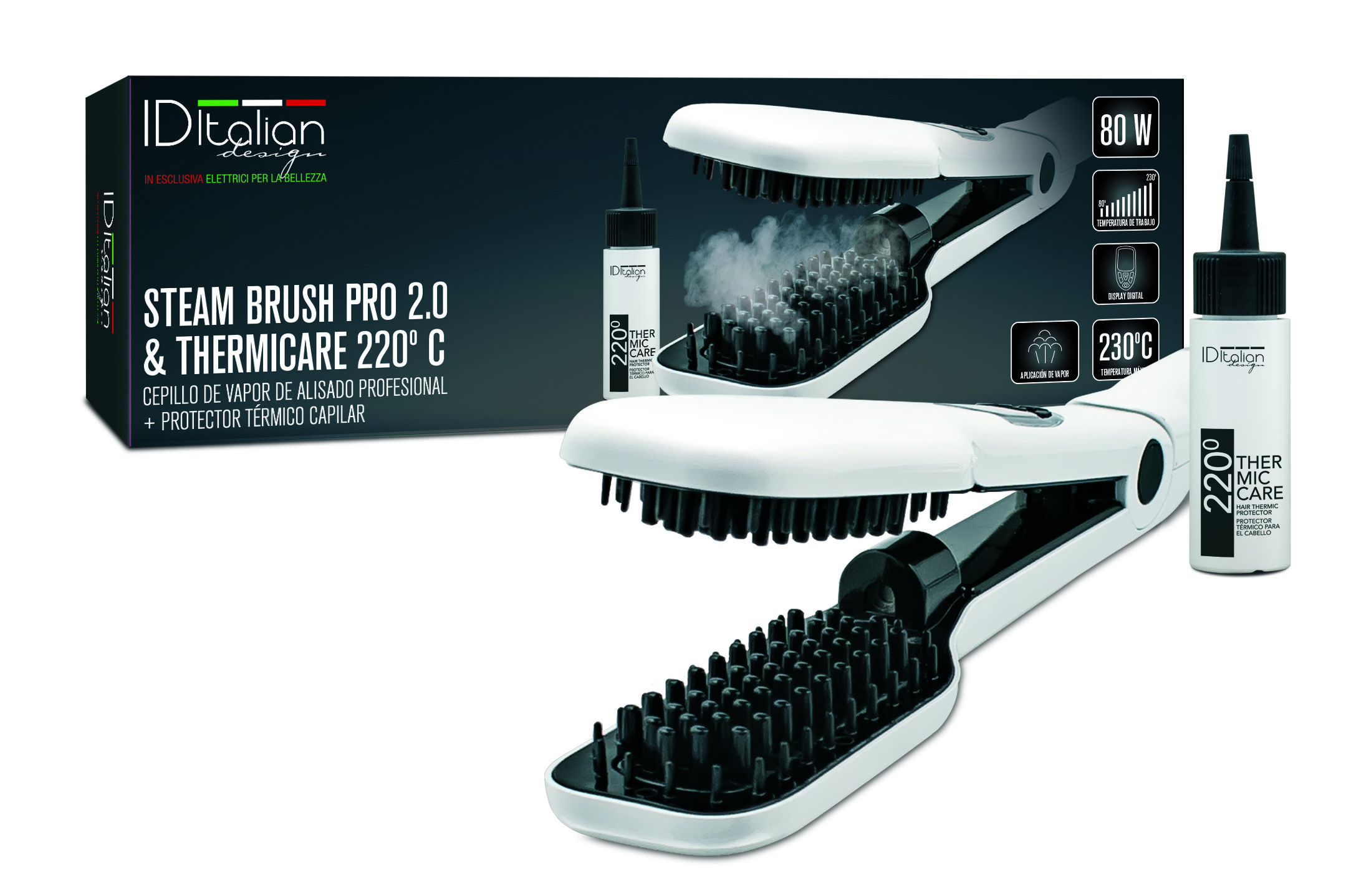 Profesionalna krtača za ravnanje z ekskluzivno tehnologijo ekstrakcije pare. Z digitalnim zaslonom lahko nadzorujete ne le temperaturo krtače, temveč tudi uporabo pare neposredno na laseh.