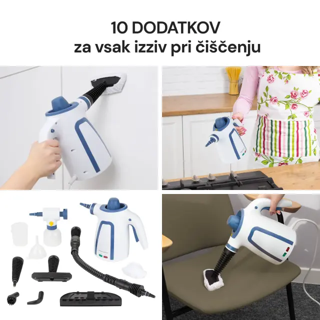 Poenostavi svojo rutino čiščenja in se poslovi od drgnjenja z eno samo napravo. Uporabi parni čistilnik Vitapur HouseCare, ki brez težav odstrani umazanijo, tudi brez uporabe čistilnih sredstev. Čiščenje z vročo paro je izjemno učinkovito na ploščicah, steklu, pultih in celo oblazinjenem pohištvu. Za specifične naloge čiščenja, kot je čiščenje fug ali pip, izbiraj med priloženimi nastavki, ki ti pomagajo, da noben kotiček ne ostane spregledan. Visoka temperatura pare tudi učinkovito razkužuje in uničuje pršice, plesen in druge alergene, zato boste s tem čistilnikom resnično dosegli čistočo na nivoju.