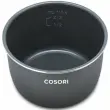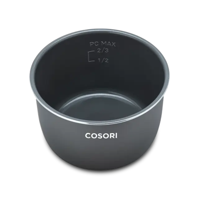 Aluminijast lonec za kuhanje je izdelan s keramično prevleko proti prijemanju, ki ne vsebuje nobenih sestavin, škodljivih za zdravje in hrano. Hrana se ne prime ali oprime keramike, zato jo je enostavno očistiti, ne glede na to, ali jo perete ročno ali jo pomivate v pomivalnem stroju. Zahvaljujoč odprtini za izpust pare, ki se odpre nazaj pri 30°, se lahko vroča para varno in enostavno sprosti. Lonec na pritisk Cosori ima dvonivojski pokrov in zaščito pred pregrevanjem za še večjo varnost.
