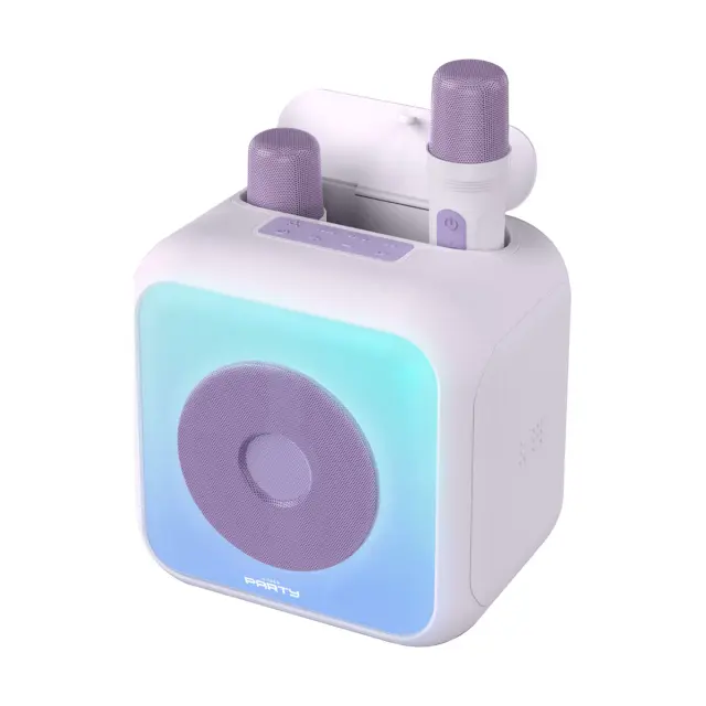 PARTY, Svetlobni zvočnik Bluetooth za zabavo s karaokami z 2 brezžičnima mikrofonoma 30W, Svetlo vijolična