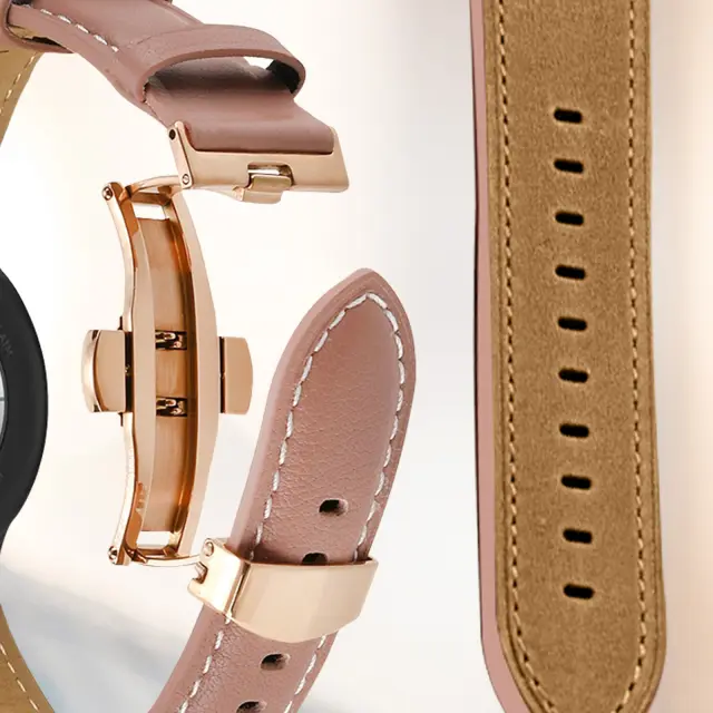 Paš?ek iz pravega usnja za Samsung Galaxy Watch 5 / 5 Pro / 4 Classic / 4 z metuljasto zaponko - pudrasto roza