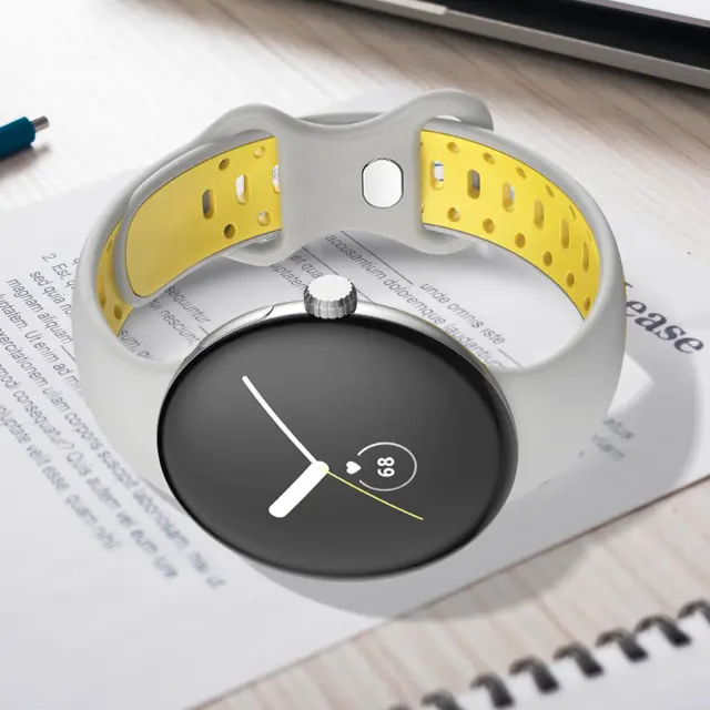 Paš?ek za Google Pixel Watch iz dvobarvnega silikona, paš?ek 217 mm – siv in rumen