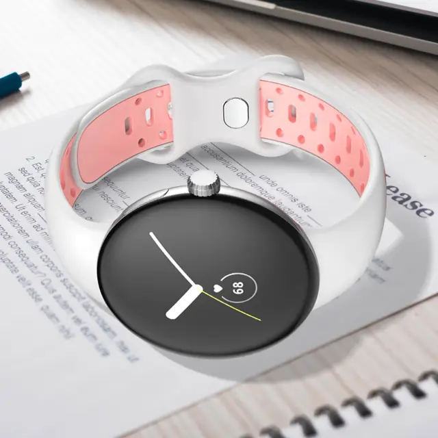 Paš?ek za Google Pixel Watch iz dvobarvnega silikona, paš?ek 217 mm - bel in roza